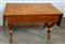 Tavolo scrittoio ad alette intarsiato a motivi geometrici e scacchiere. Due cassetti sottopiano, gambe sagomate con sostegni curvati. Secolo XIX (cm 104x72x54) (difetti)