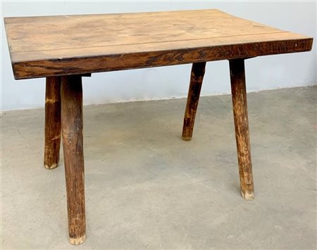 Tavolo di forma rettangolare con gambe in legno grezzo (cm 110x78x73) (difetti)