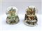Lotto di due boule de neige con carillon raffiguranti angeli e animali. Vetro e resina policroma (h max cm 21) (difetti)