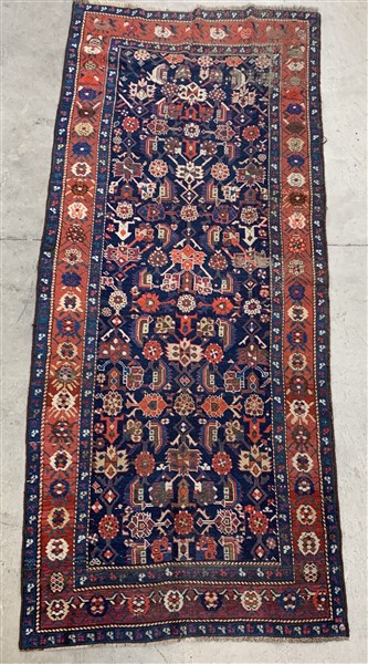 Decoro con motivo Herati policromno su fondo blu notte. (cm 265x108) (Difetti, rapature e vecchi restauri.)