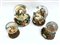 Gruppo di sette boule de neige a tema natalizio alcune con carillon. Vetro e resina policroma (h max cm 16) (difetti)