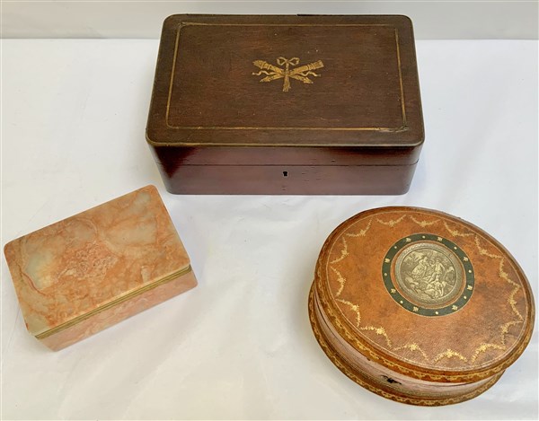 Lotto 1506 | Lotto composto da tre scatole, una in onice, una del secolo XIX e una in pelle,