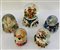 Gruppo di cinque boule de neige con carillon a tema natalizio. Vetro e resina p