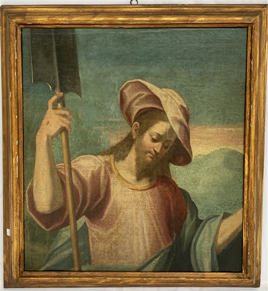 Ignoto "Cristo nelle vesti di giardiniere" (ritaglio da un "Noli me tangere"), antico dipinto ad olio su tela (cm 58x54). In cornice