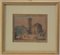 "Paesaggio con monastero e figure" acquerello su carta applicata su cartoncino (cm 10x13) in cornice