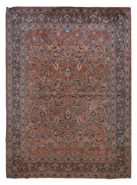 Tappeto Keshan, Persia, secolo XX. Decoro alla over floreale su fondo rosa scur