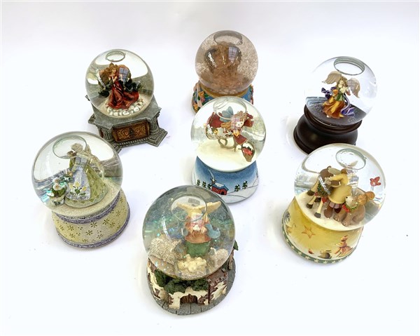 Lotto 1607 | Gruppo di cinque boule de neige natalizie raffiguranti presepi, di cui quattro