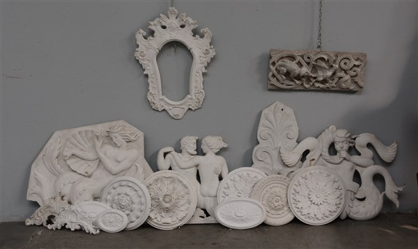 Lotto 1627 | Lotto composto da numerosi fregi per decorazione in gesso (difetti)