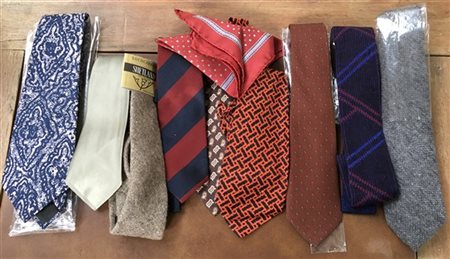 Cartone contenente numerose cravatte ed alcuni fazzoletti da taschino (difetti e segni d'uso)