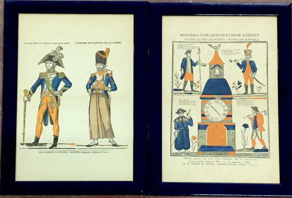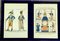 Coppia di stampe acquerellate raffiguranti soldati in cornice. (fogli cm 51x33
