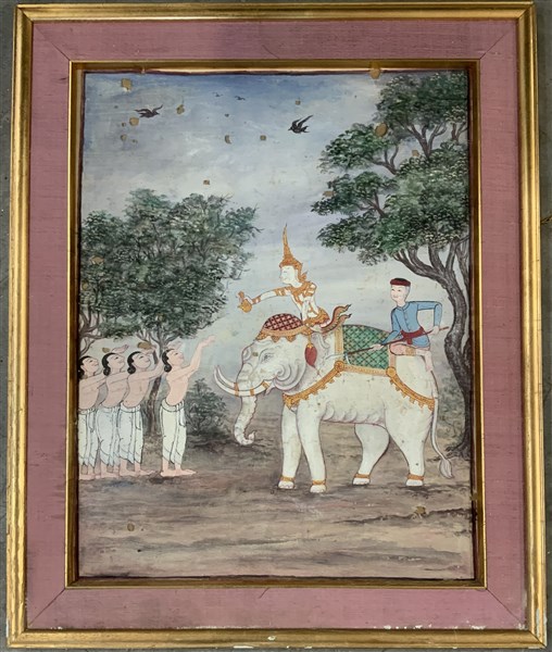Lotto 1707 | pannello orientale raffigurante scena con divinità (cm 49x61) in cornice Manifa