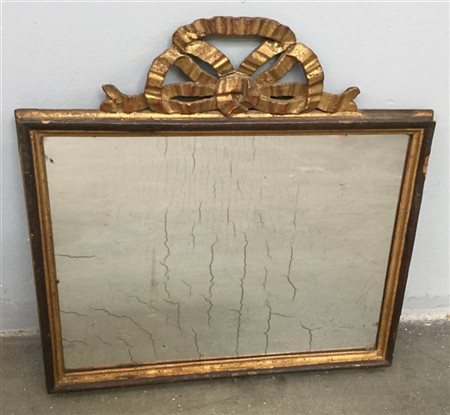 Specchio di forma rettangolare decorato con antico fregio a nastro (cm 46x45) (difetti)
