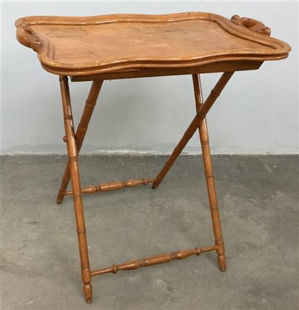 Tavolino pieghevole con sostegni a finto bamboo e piano biansato a "vassoio" di forma sagomata, secolo XIX (cm 81x79x51) (difetti)