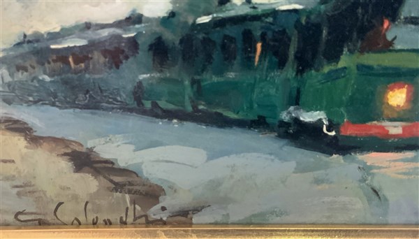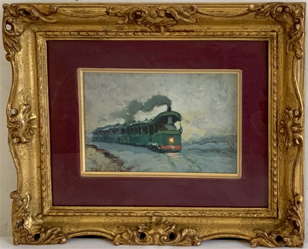 "Il treno" olio su tavola (cm 13x18) Firmato in basso a sinistra. In cornice