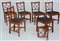 Gruppo di sei sedie in legno, con gambe anteriori rastremate, schienali a giorn