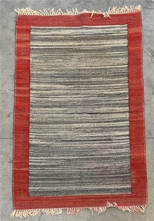 Tappeto Pezzotto Valtellinese, secolo XX, decoro a campo libero pepe e sale, bordura rossa (cm 200x127) (Lievi difetti)