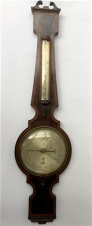 LUIGI CAMOZZI COMO. Barometro/termometro con cassa in legno filettato di forma sagomata. Epoca secolo XIX. Misura h. cm 102. (difetti)