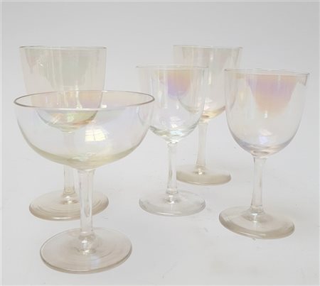 Manifattura di Murano, parte di servizio di bicchieri in vetro soffiato iridato