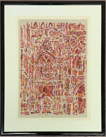 Egidio Bonfante "Duomo" litografia a colori Foglio a vista: 63 x 45 cm Firmato