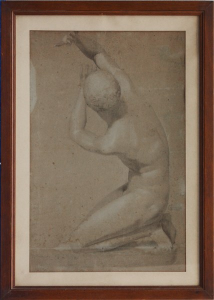 Scuola del secolo XIX "Nudo maschile" matita su carta (cm 56x36). In cornice (d