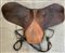 Lotto composto da una sella da equitazione in cuoio e due staffe con staffili (