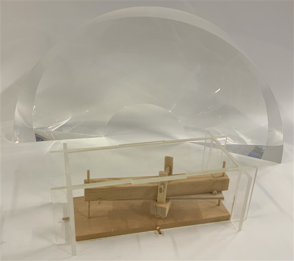 Lotto composto da una scultura in plexiglass, produzione Fusina, anni '70 e una