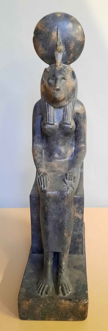 Riproduzione in gesso patinato di divinità egizia. stampiglio museo del Louvre