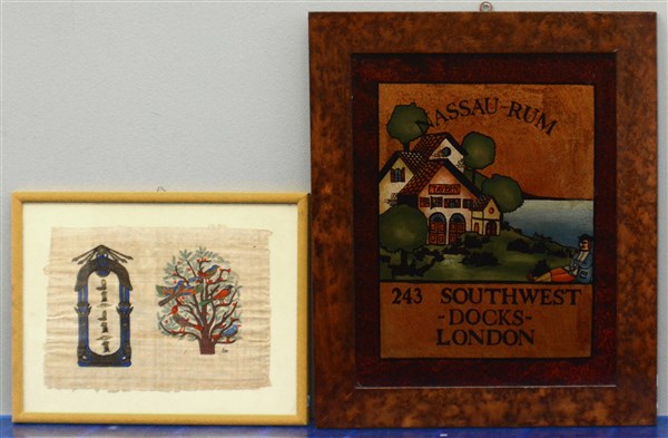 Lotto 1996 | Lotto composto da un verre peint pubblicitario e un souvenire dipinto su papiro