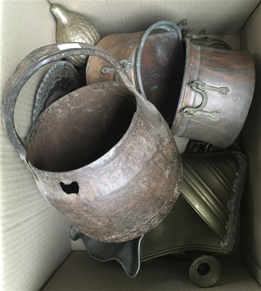 Cartone contenente numerosi oggetti in rame ed altri materiali (difetti)