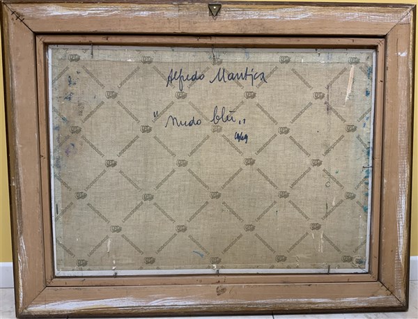 Alfredo Mantica "Nudo blu" 1969 olio su cartone telato cm 50x70 firmato in basso