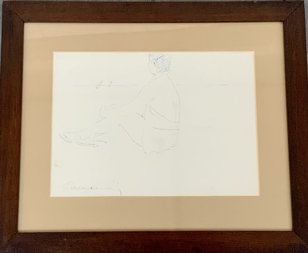 "Donna sulla spiaggia" disegno ad inchiostro blu (cm 24x33) Firmato in basso a sinistra. In cornice (difetti)