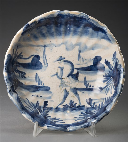 Crespina in maiolica con figura in un paesaggio in monocromia blu. Liguria, sec
