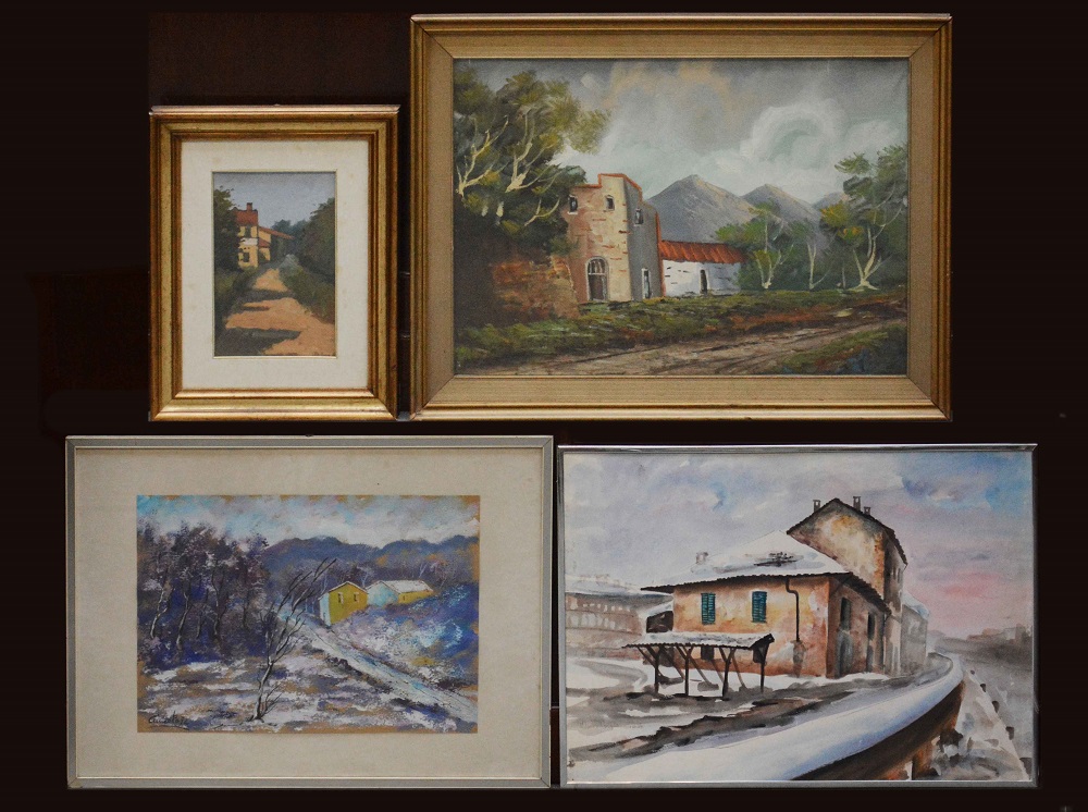 Lotto 2110 | Lotto di quattro dipinti raffiguranti "Paesaggi" Autori, tecniche ed dimensioni