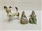 Lotto composto da una coppia di piccoli contenitori in ceramica policroma con figure di dama e gentiluomo, ed una ceramica raffigurante un Lakeland Terrier (h max cm 12,5) (difetti e restauri)