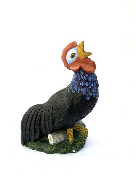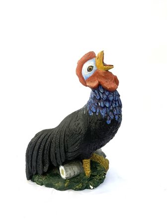 Ignoto, scultura in gesso dipinto raffigurante un gallo (h cm 48) (difetti)
