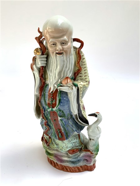 Figura di Luohan in porcellana policroma Cina, sec. XX (h cm. 36) (difetti e ma