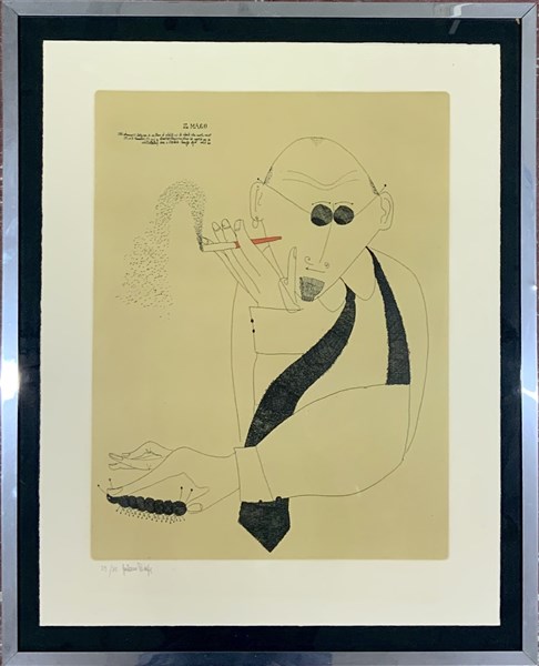titolata e iscritta in lastra in alto a sinistra, numerata 39/75 e firmata in basso a sinistra a matita; etichetta al retro della Galleria Rondanini, Roma. In cornice (lievi difetti)
