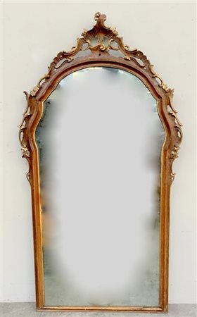 Antica specchiera "veneta" in legno con fregi dorati e traforati (cm 67x122) (d