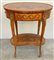 Tavolino di forma ovale a due cassetti con fascia intarsiata a frutti e fiori,