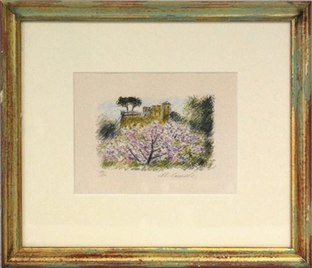 Michele Cascella "Ciliegio del castello" litografia a colori cm 15x20 Firmata e