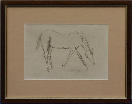 Angelo Frattini "Puledro al pascolo" 1962 matita su carta, cm 19x27 Firmato e da