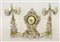 Trittico da camino in porcellana policroma composto da pendola con quadrante co