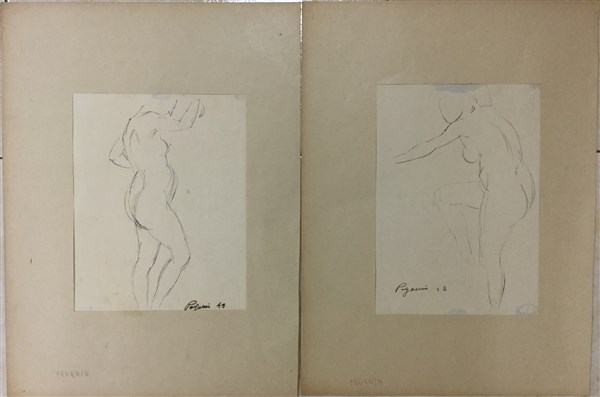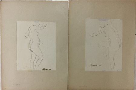 Giovanni Paganin "Nudi femminili" 1943 coppia di disegni ad inchiostro cm 29x32