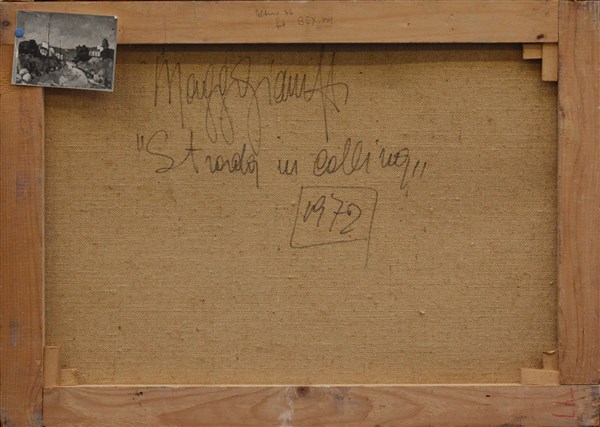 "Strada in collina" olio su tela (cm 50x70) Firmato e datato 1972 in basso a destra. Firmato, titolato e datato al verso