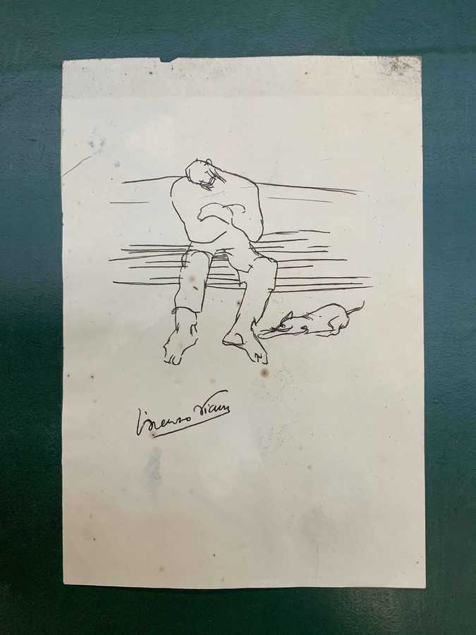 Lorenzo Viani "Figura seduta con gatto" bozzetto a china su carta (cm 20x14) Fir
