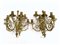 Coppia di appliques a sette fiamme in bronzo dorato con pendagli in cristallo s
