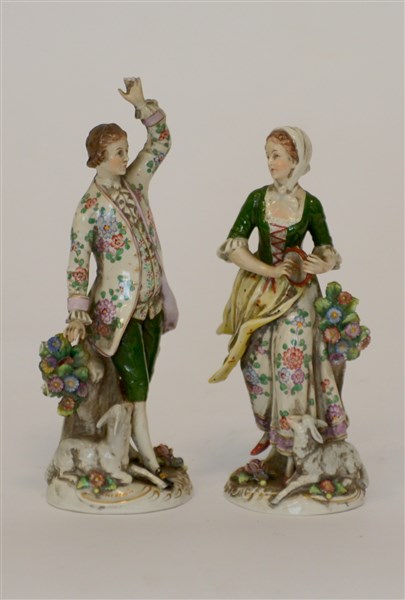 Manifattura della prima metà del secolo XX "Pastorelli" coppia di sculturine in porcellana policroma (h cm 23) (difetti e mancanze)