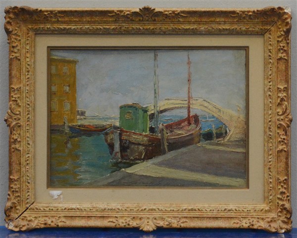 Gaetano Sperati "Chioggia, peschereccio" olio su cartone (cm 25x34) firmato e da