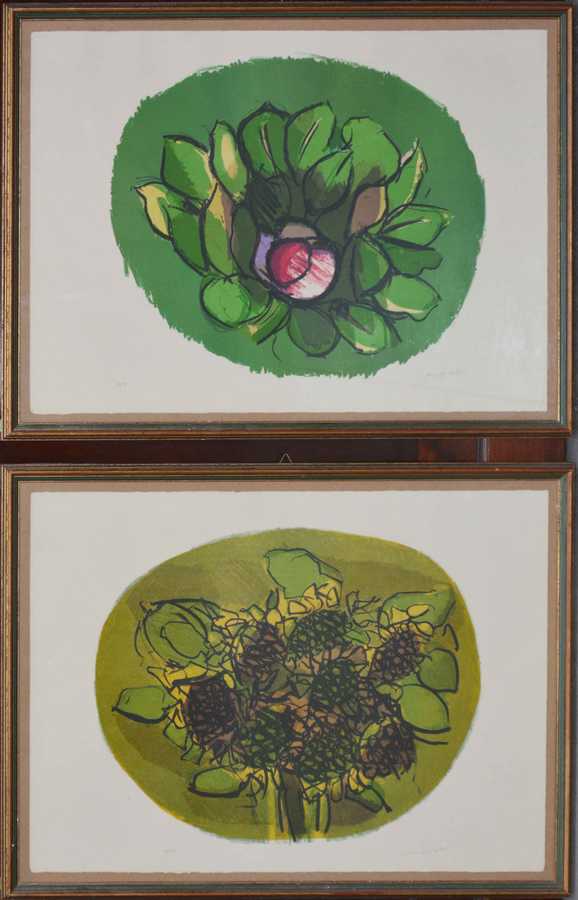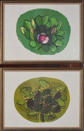 Ennio Morlotti due litografie a colori cm 51x70 numerate 97/99 e firmate in bass