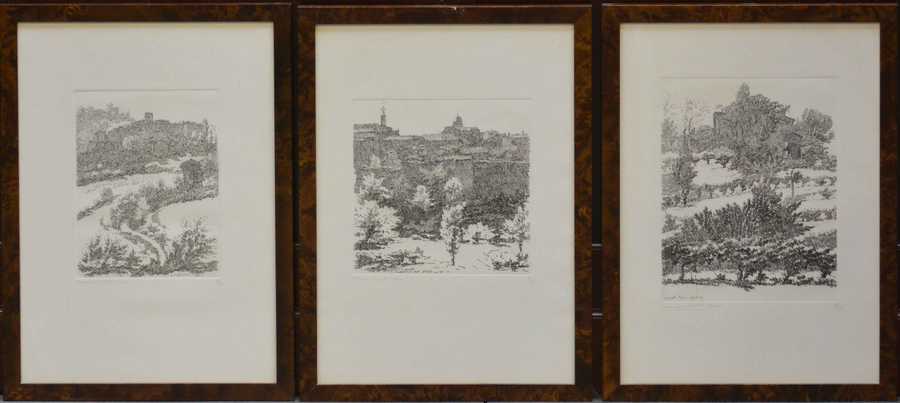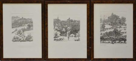 Leonardo Castellani Lotto di tre acqueforti raffiguranti paesaggi Ciascun foglio